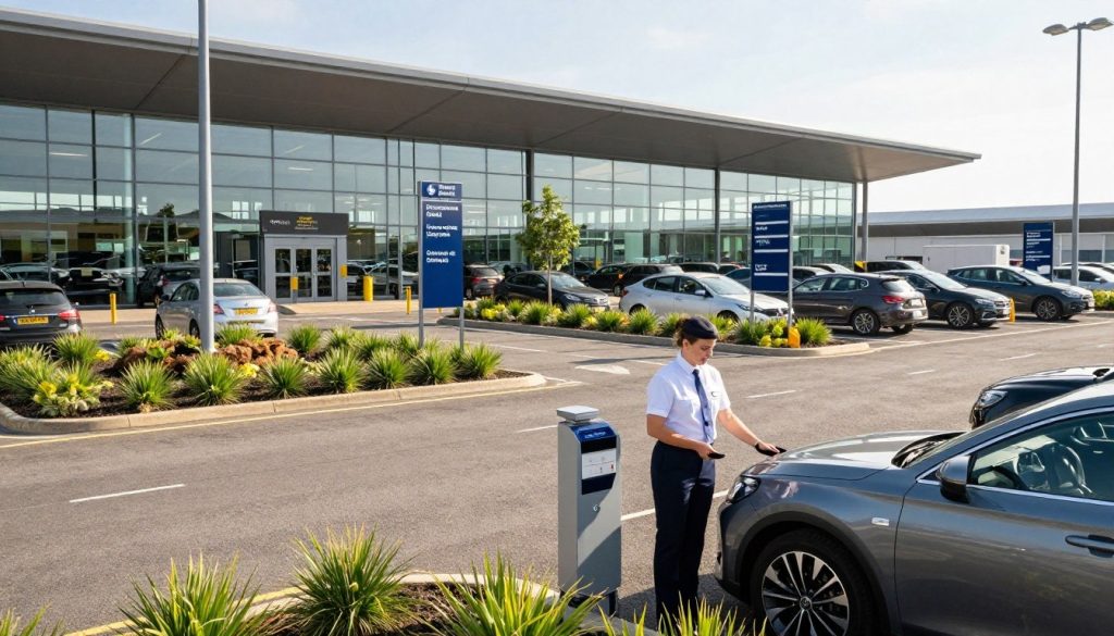 Travellers looking for an easy parking option at Birmingham Airport should try meet and greet parking services. This service lets passengers drop off their car at a set spot. Then, a chauffeur takes it to a safe parking area.